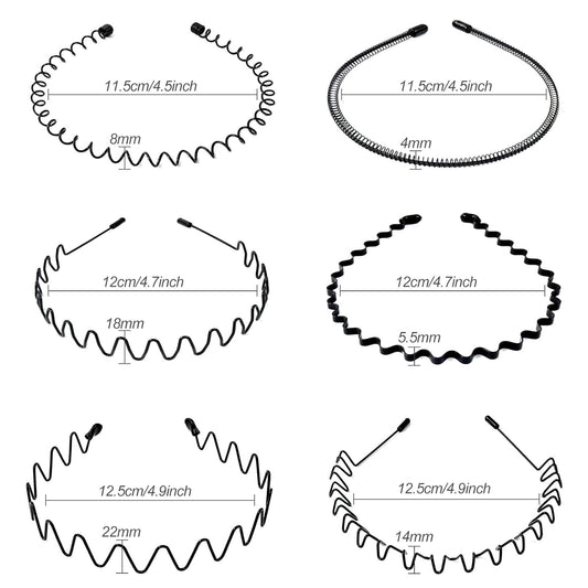 Hanyousheng 6 Stück Metall Haarband, Schwarz Welle Metall Stirnband, Haarreifen Unisex, Multi-Stil Haarbänder für Männer Frauen, für Outdoor Sports Yoga