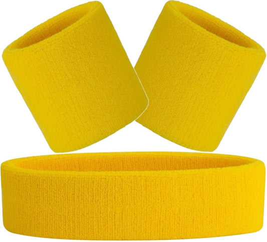 Hatstar 3-teiliges Schweißband Set | 1x Stirnband + 2X Schweißbänder für Handgelenke | Stirnband Damen & Herren | Accessoire für Karneval & Fasching Aerobic Kostüm