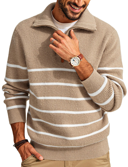 PJ PAUL JONES Men’s Quarter Zip Sweater – Striped Mock Neck Pullover