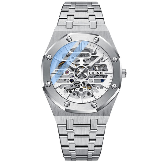 Rorios Herrenuhren Automatische Mechanische Uhr Leuchtend Uhr mit Edelstahl-Armband Skelett Militär Armbanduhr