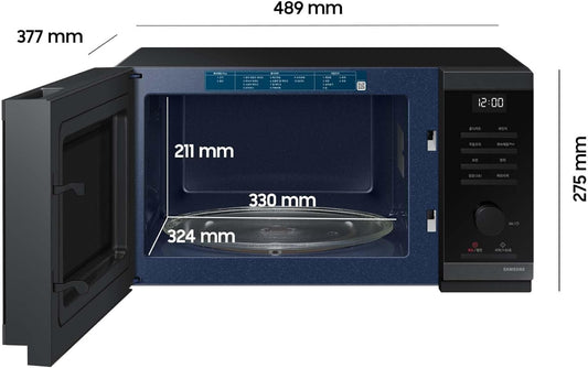 Samsung MS23DG4504AGE1 Solo-Mikrowelle ohne Grill, 23 l, 800 W, Home Dessert, Quick Defrost, Healthy Cooking, Warmhaltefunktion, Schwarz Edelstahl