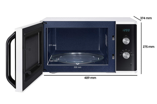 Samsung MW3500 Mikrowelle MS23K3614AW/EG / 800 W / 23 L Garraum / 48, 9 cm Breite / Kratzfester Keramik-Emaille-Innenraum / 6 Leistungsstufen / Weiß