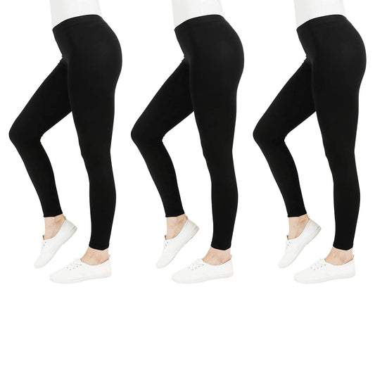 FM London Women’s 3-Pack Casual Leggings – Non-See-Through High Waist Cotton Leggings