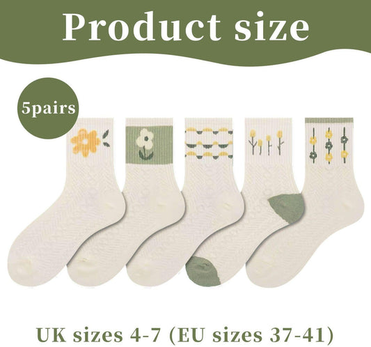 5 Pairs Women's Floral Socks – Mid-Calf, Soft, Durable, and Fashionable Accessories
