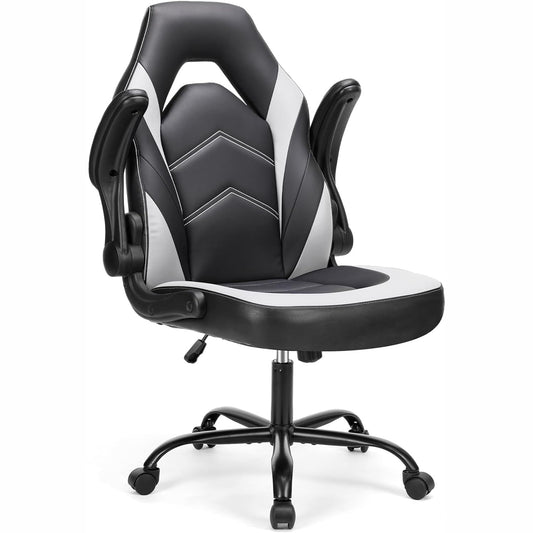 DUMOS Gaming Stuhl - Ergonomischer Gaming Sessel, Verstellbarer Drehbarer Gamingstuhl aus PU-Leder mit klappbaren Armlehnen, Geeignet für Zuhause, Büros usw(Schwarz-Grau)