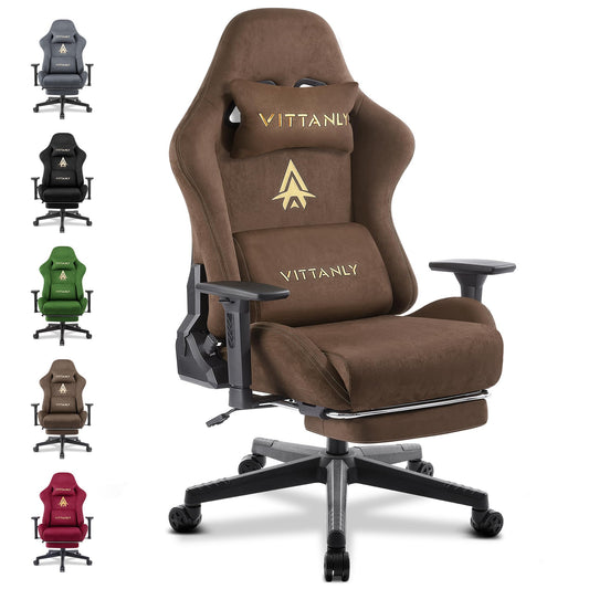 Vittanly Gaming Stuhl, Luxuriöser Atmungsaktiver Wildlederimitat Bürostuhl Gaming Chair, Ergonomischer Gamer Stuhl mit Fußstütze Kopfstütze und Lendenkissen, 3D Armlehnen, 90-155° Rückenlehne, Grau
