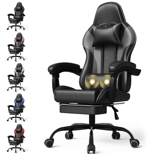 Devoko Massage Gaming Stuhl, Bürostuhl mit Fußstütze und Massage-Lendenkissen, Gamer Stuhl mit Kopfstütze, Ergonomisch Gaming PC Stuhl 150 kg Belastbarkeit, Schwarz