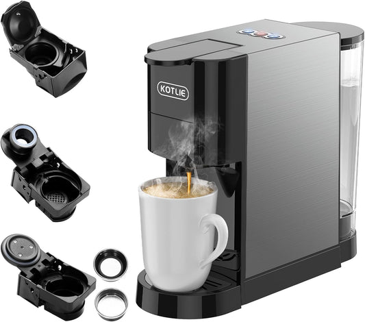 KOTLIE Espresso Kaffeemaschine, 4 in1Kaffeemaschine für NES/DG/Mehl/ESE Kapsel Espressomaschine, 19 Bar