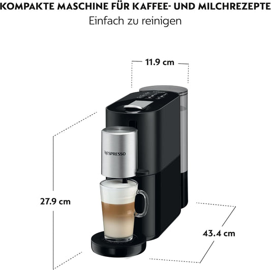 Nespresso Krups Atelier Kaffeemaschine mit Milchaufschäumer, 1 L Wassertank, inkl. Glastasse+Kapseln, 19bar Druck, schwarz/silber