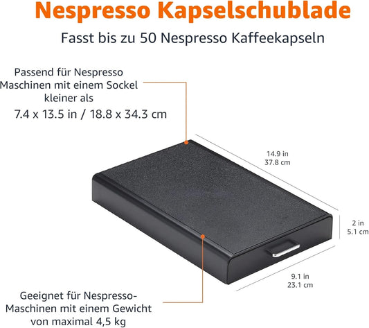 Amazon Basics 1 Schubladenbox zur Aufbewahrung von Nespresso Originalline Kaffeekapseln, Kunststoff, Fassungsvermögen: 50 Kapseln, Belastbarkeit 4,5 kg, Schwarz
