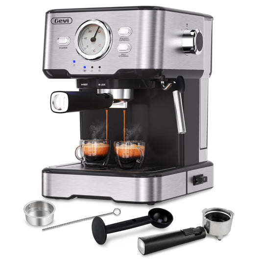 Gevi 20 Bar Espresso Kaffeemaschine Espressomaschine mit professionellem Milchaufschaumdüse, nur 15 cm breit,1350W schnelle Hitze für Cappuccino, Latte & Macchiato, 1,2L Wassertank, Weiß