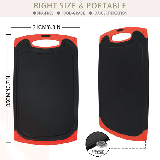 Schneidebrett Set 3 Stück | Schwarz Schneidebrett Kunststoff mit Saftrillen und rutschfeste Griffe | Schneidebretter Groß Antibakteriell | Küchenbrett BPA-Free für die Küche Obst/Gemüse/Fleisch