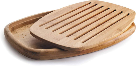 Relaxdays Brotschneidebrett aus Bambus H x B x T: ca. 3 x 37 x 21,5 cm Schneidebrett mit Krümelfach zur leichten Reinigung Brotbrett mit herausnehmbarem Krümelgitter messerschonendes Holzbrett, natur