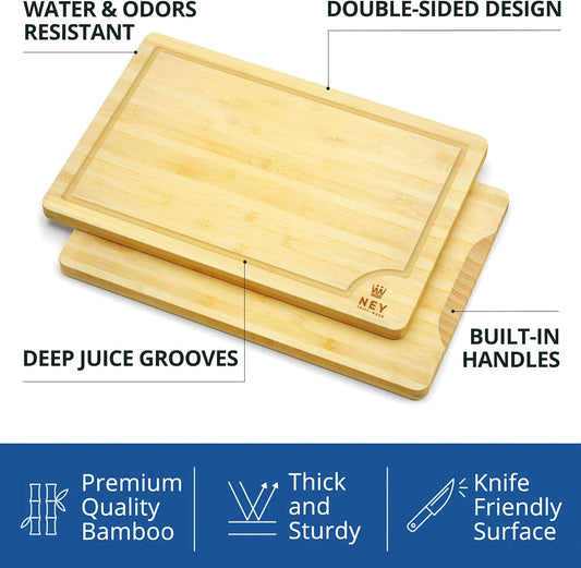 Bambus Schneidebrett Holz (3er Set) Wooden Cutting Board (38x25 / 30x20 / 22x15cm) Perfekte Holzschneidebrett für Brot, Fleisch, Obst