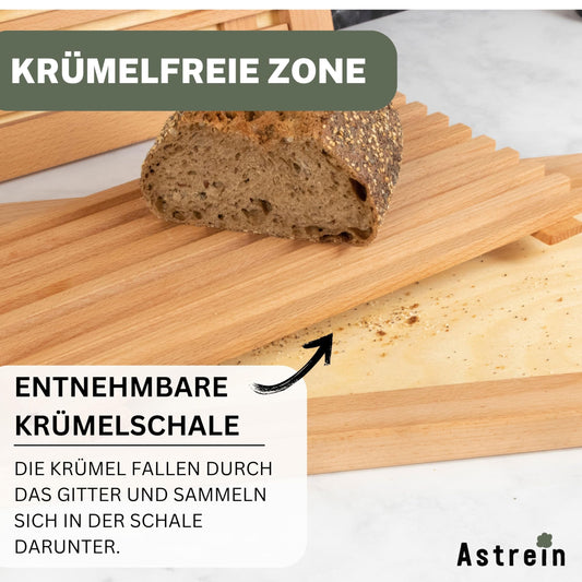 ASTREIN | Brotschneidebrett mit Krümelrost aus massivem BUCHENHOLZ | Holzschneidebrett | Schneidebrett für Brot mit Auffangschale | 40 x 25 cm | leicht zu reinigen | Made in Europe (40 x 25 cm)