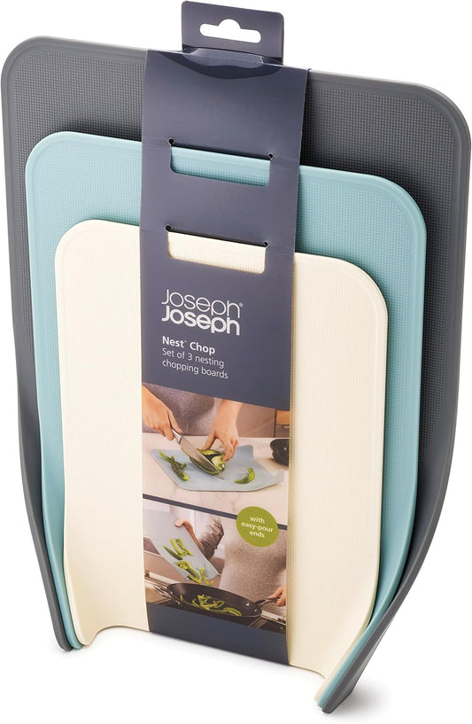 Joseph Joseph Nest 3-teiliges Schneidebrett-Set, platzsparende stapelbare Bretter, spülmaschinenfest – Blau/Grau/Weiß, Opal