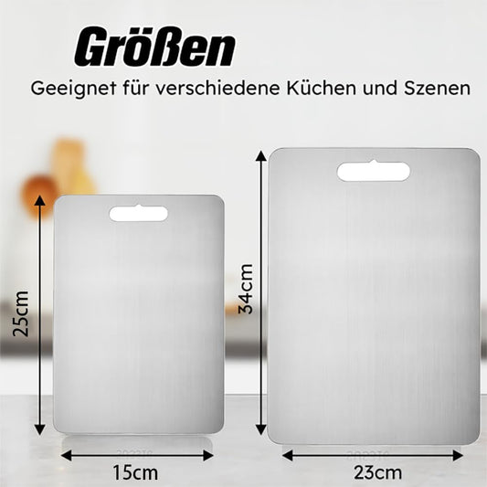 Schneidebrett-Titan, 2 Stücks Schneidbrett Edelstahls, Titaniums Schneidebrett, Doppelseitiges Schneidebretter, Küchenbrett Cutting-Board, Schneidebretter Küchenzubehör(34 x 23cm+25 x 15cm)