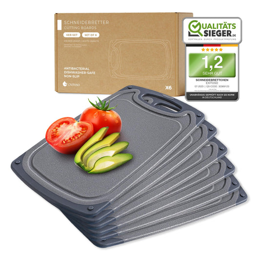 Blumtal Schneidebrett Set mit 3 Größen (S/M/L) - Schneidebrett Kunststoff groß + Saftrillen & Griff - Cutting Board - Küchenbrett BPA frei - Schneidbrett Spülmaschinenfest - Schneidebretter Grau