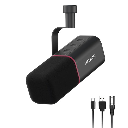 IXTECH Dynamisches Mikrofon mit Nierencharakteristik RGB Gesangsmikrofon USB XLR Studiomikrofon Software Stummschalttaste Microphone für Podcasting Streaming Aufnahme Gaming und Voice-Over Schwarz