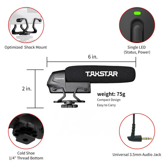 Takstar Interview Shotgun Mikrofone for Smartphone, 3,5mm Super-Kardioid Kondensor Video Kamera Mikrofon für Vlog, Video, Studio, DSLR, Camera, Camcorder, Aufnahmen, Podcasting (SGC-600)