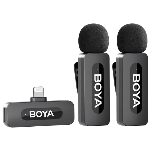 BOYA Wireless lavalier microphone iPhone, mini clip-on microphone wireless, iPhone iPad microphone for video recording, streaming podcast with noise reduction, 32 hours working time (BY-WM3T-D2)