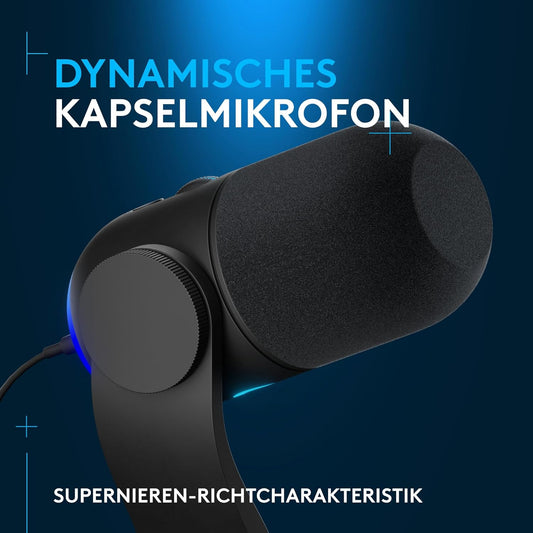 Logitech G Yeti GX Dynamic RGB Gaming Microphone with LIGHTSYNC, USB Microphone for Streaming, Super Cardioid, USB Plug and Play for PC/Mac - Black