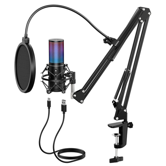 QIUOIO Gaming Mikrofon PC: USB Mikrofon Mit Arm - RGB Podcast Mikrofon - Streaming Mikrofon - Microphone for PC - Gaming Mic Fuer PS4/PS5/MAC - USB Micro PC - Gaming Mic