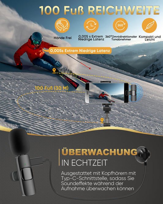 IUMAKEVP Lavalier Mikrofon Kabellos kompatibel mit iPhone/iPad/Android-Handy/Laptop, Plug-Play Wireless Ansteckmikrofon mit Rauschunterdrückung für Videoaufnahmen/Live-Dampf/Interview/TikTok (2 Mics)