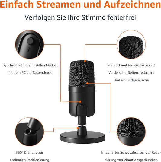 zealsound USB Mikrofon, Kondensator Mikrofon für PC Handy, PS4, PS5, Microphone PC USB C für Gaming, Podcast,Aufnahmen,Streaming,ASMR mit Stumm/Gain/Echo, Adapter für Phone,Kompatibel mit Mac, Winows