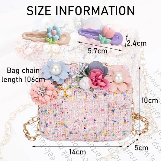 HTTDSLF Mini Crossbody Bag for Girls – Kids Princess Purse with Hair Clips