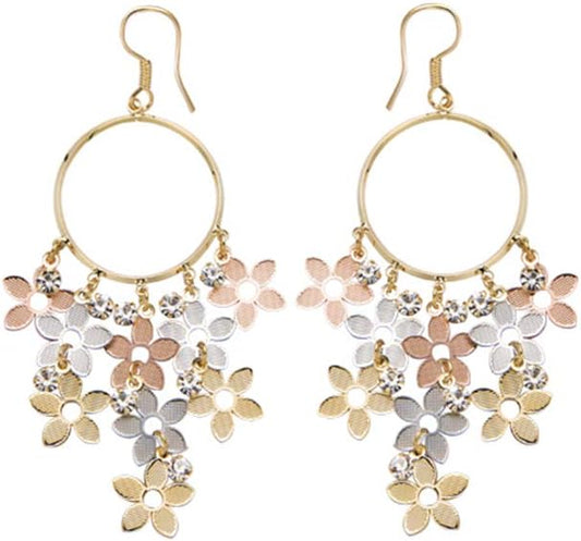 Ms. Swan 925 Sterling Silver Golden Round Flower Tassel Earrings