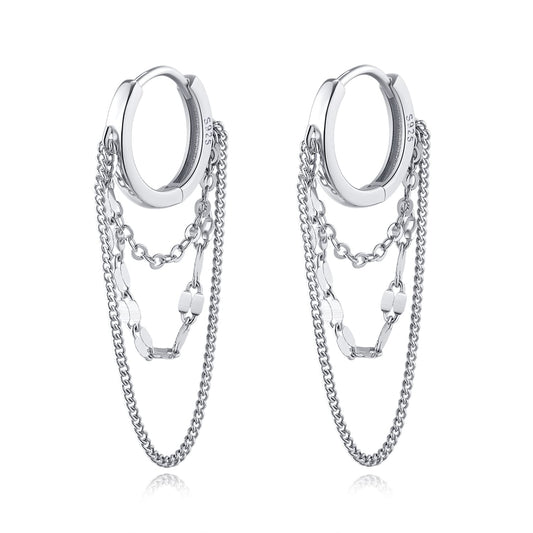 Reffeer Sterling Silver Hoop Chain Earrings for Women