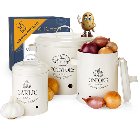 Homety Kartoffel Aufbewahrungsbox [3er Set]- Deko Küche - der ideale Weg für Zwiebel Aufbewahrung Kartoffel Aufbewahrung und Knoblauch Aufbewahrung (Weiss)