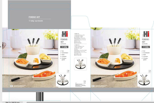 BeBuy24 Fondueset 11 teilig Keramik Porzellan Schokofondue Käsefondue Fondue Set Schoko Käse