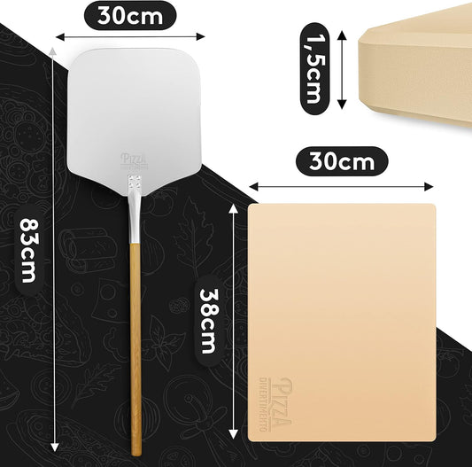 Pizza Divertimento - DAS ORIGINAL - Pizzastein für Backofen & Gasgrill – inkl. Pizzaschieber – Vergleich.org ausgezeichnet - Pizza Stein – Für knusprigen Boden & saftigen Belag - Inkl. e-Rezeptbuch