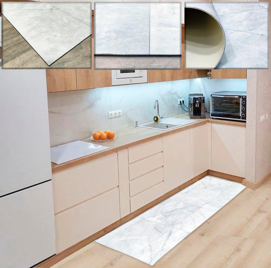 Tadi & Imperio1979 Vinyl carpet, anthracite, marble pattern, for kitchen, vinyl carpet, living room carpet, non-slip, with grey details.