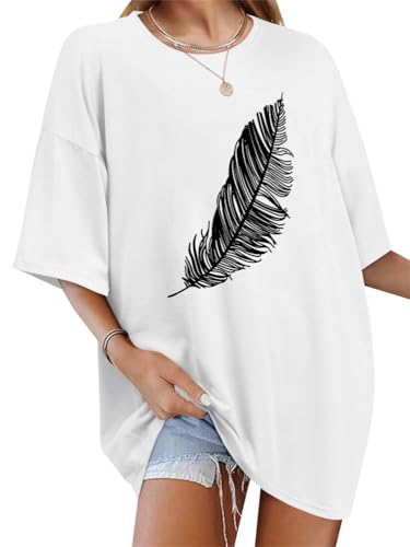 Tomwell Women's Oversized T-Shirt – Good Vibes Feather Print