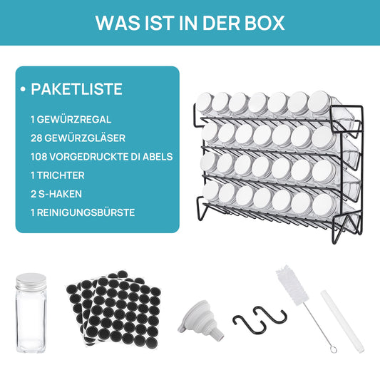 Vtopmart 4-Tier Standing Spice Rack, 28 Empty Spice Jars with Rack and 432 Spice Labels, Spice Organizer for Kitchen, Cabinet, Pantry, Cupboard, Countertop
