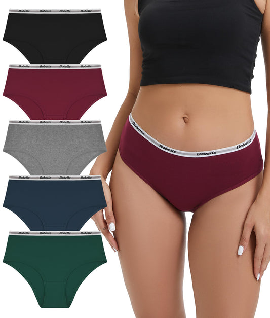 Women's Cotton Briefs 5-Pack Comfortable Breathable Hipster Panties - Size S-XXL