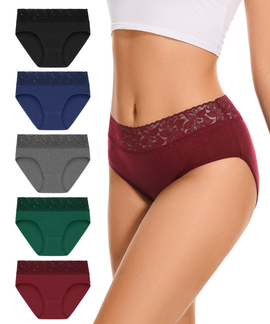 Women's Hipster Cotton Underwear Mid-Waist Lace 5-Pack - Sizes S–XL