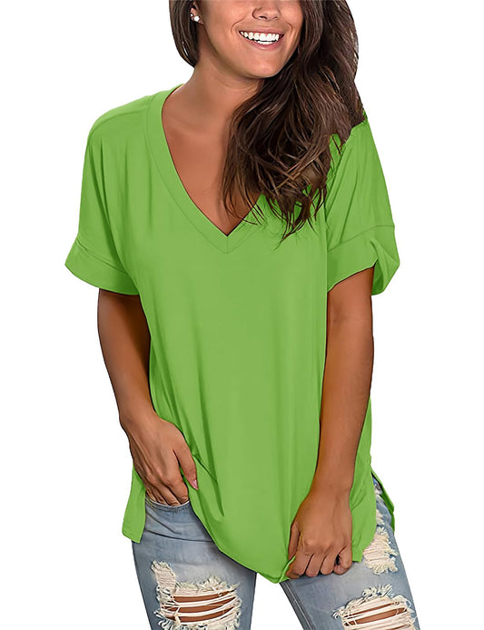 Women's V-Neck Cotton T-Shirt – Short Sleeve Loose Fit Summer Tee