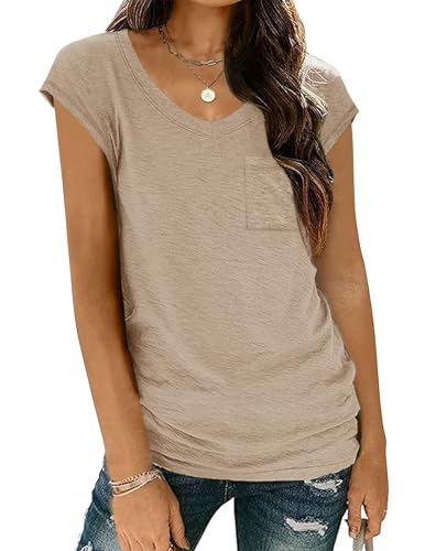 Zeagoo Women's Basic V-Neck T-Shirt with Wing Sleeves