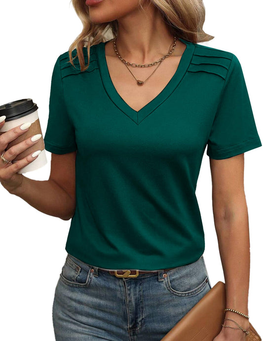 Zeagoo Women's V-Neck Pleated T-Shirts