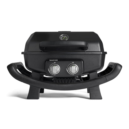 BURNHARD 2-burner gas grill Wayne 4.4 kW – Portable balcony grill – Small table gas grill with die-cast aluminum combustion chamber including cover – Cast iron grill grate