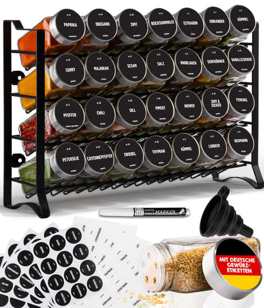 Deco haus® Spice Rack, Standing & Wall Mounted [WITH 28 JARS & LABELS] - Spice Organizer - Wall-Mounted Spice Rack - Spice Racks - Spice Stand - Hanging Spice Rack - Cabinet Spice Rack