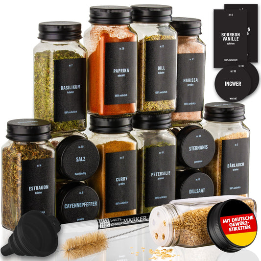 Deco haus® Square Spice Jars with Screw Caps, Set of 24 [+Labels & Shaker Insert] - Glass Spice Jar Set - Spice Containers - Spice Storage - Spice Organizer