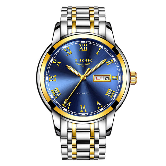 LIGE Watches Men Chronograph Analog Quartz Classic Business Wristwatch, 3ATM Waterproof Stainless Steel Men's Watch, Leather Strap/Stainless Steel Bracelet Watch Gift for Men