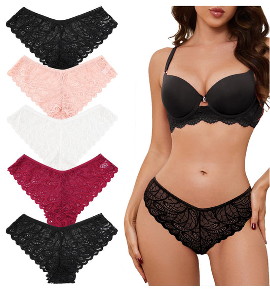 Lishang Women's Lace Thong 5-Pack - Sexy Low Waist Lingerie