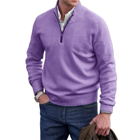 Men's Cashmere Quarter-Zip Sweater – Soft Knit Stand Collar Pullover