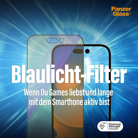 PanzerGlass™ Anti-Blue Light Screen Protector for iPhone 14 Pro Max - scratch-resistant and eye-friendly screen protector with blue light filter for retina protection - positioning aid for easy application
